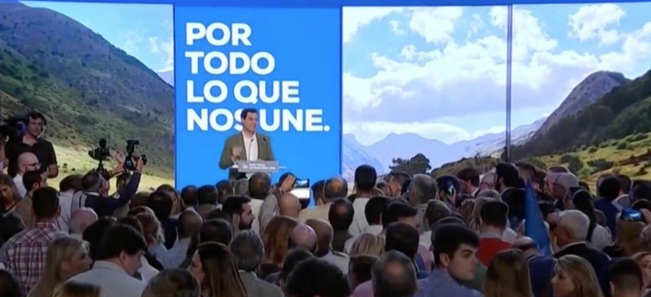 El presidente de la Junta de Andalucía toma la palabra: “En los 8.115 municipios se han puesto de acuerdo para tener un gobierno. Solo falla un Gobierno, el de Pedro Sánchez”. “Votar al PSOE es votar bloqueo y concesiones a la izquierda radical y separatistas”.