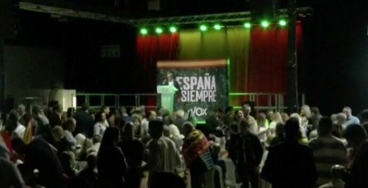 Después del receso “para que llegase la gente”, la formación ultraderechista, ya sí está lista para comenzar. “Buenas tardes, españoles, bienvenidos a la resistencia”, comienzan.