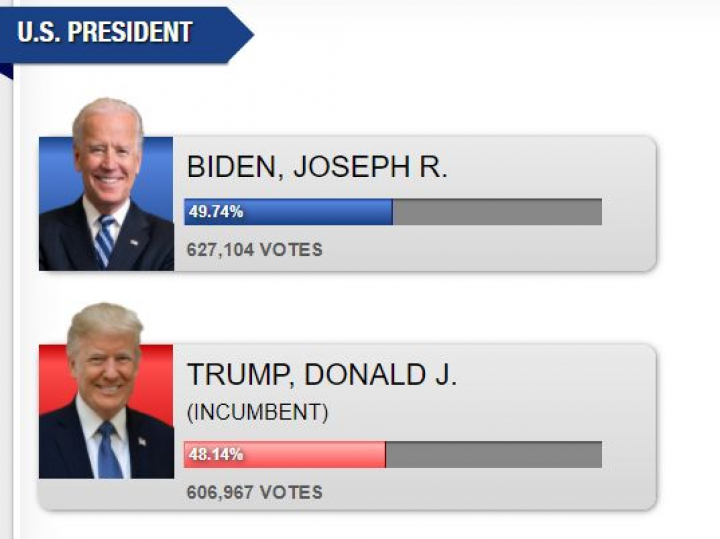 El Estado ha sumado 4.891 votos más que colocan al candidato demócrata, Joe Biden, 9.027 por delante del presidente Donald Trump (antes eran 6.737).
