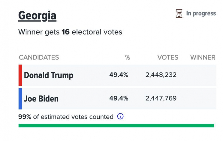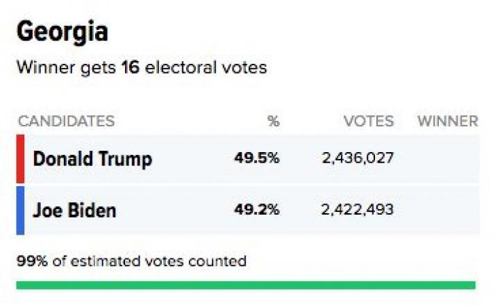 20:28 Georgia, al 99% escrutado