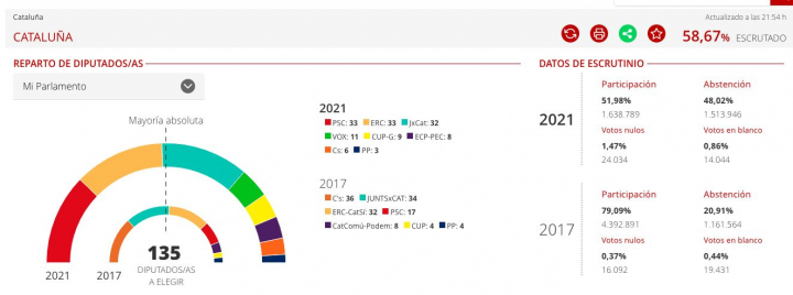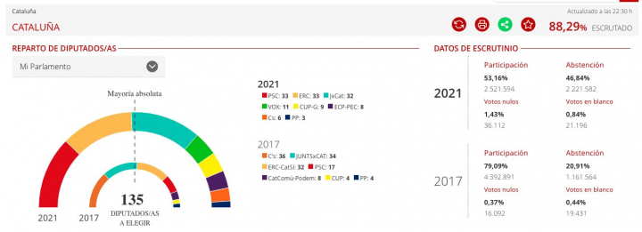 Cataluña ha votado. Este 14-F deja un nuevo Parlamento completamente fragmentado, con mayoría independentista pero con el PSOE como la fuerza con más apoyos de los ciudadanos. Ha funcionado el efecto Illa.