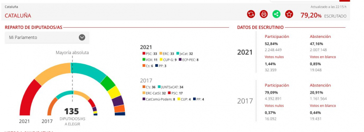 22.10 Al 74%, el PSOE se adelanta a ERC