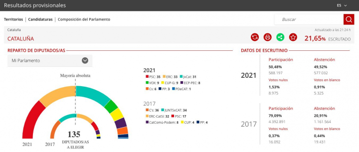 21.29 Ya son datos oficiales: 21% de los votos escrutados