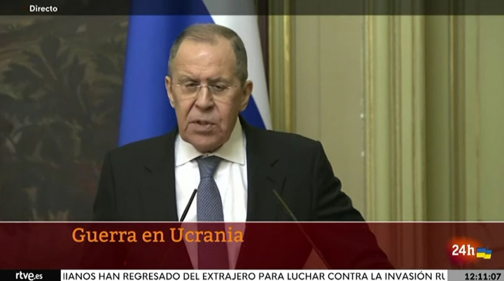 El ministro de Exteriores ruso repite las exigencias a Ucrania en la negociación del alto el fuego. Entre ellas, insiste en la “desnazificación” del país. “Permitir el neonzaismo en la Europa civilizada e ilustrada no es aceptable. Esto es algo que nos está amenazando a la Federación rusa”. También habla de la “amenaza” de la OTAN en Ucrania y exige el reconocimiento de Crimea y de la independencia de las regiones prorrusas.