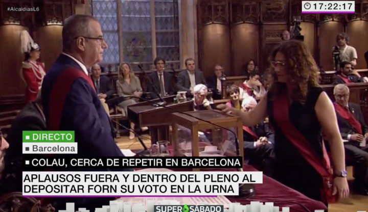 Ya están votando en el Pleno del Ayuntamiento de Barcelona. Previsiblemente, Colau será elegida alcaldesa.