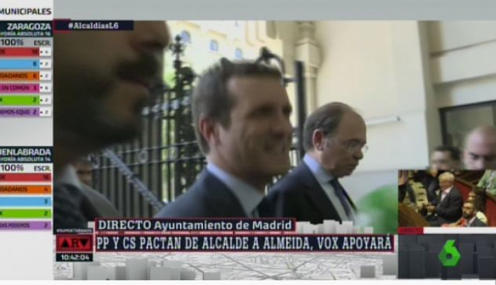 A última hora de la noche saltaba la esperada noticia: PP y Ciudadanos lograban un acuerdo para que José Luis Martínez-Almeida sea el próximo alcalde de Madrid. El partido naranja asumirá algunas de las consejerías del gobierno municipal (consúltalas aquí).