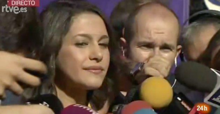 Arrimadas, líder de Ciudadanos en Cataluña, en la manifestación de Societat Civil. "La mayoría de los catalanes queremos recuperar nuestras instituciones, quiero que todos los catalanes nos volvamos a dar la mano y volvamos a caminar juntos. Queremos reivindicar la convivencia. Lo de hoy es una pequeña muestra comparado con la cantidad de votos que lograremos el 21 de diciembre".