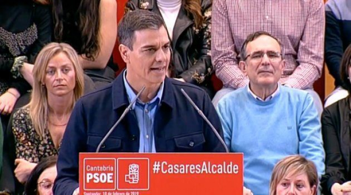 El presidente del Gobierno, Pedro Sánchez, se ha referido a la concentración desde un mitin en Santander. Repite lo que ya dijo este sábado, que el PSOE se ha mantenido siempre en "la legalidad" y acusa al PP de "deslealtad" pese a que lo vistan "de patriotismo". "Siempre hemos dicho diálogo y Constitución".