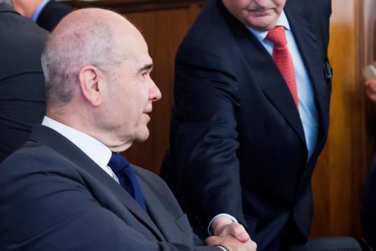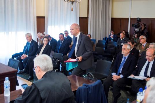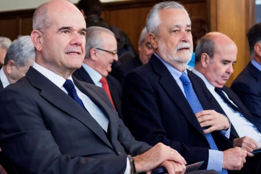 Antes de entrar a la sala, el expresidente ha estado departiendo en los pasillos sobre todo con el que fuera su sucesor, José Antonio Griñán -que declaró el pasado miércoles- y el exconsejero de Empleo José Antonio Viera, entre otros acusados.