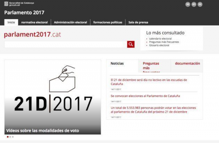 El departamento de la Vicepresidencia y de Economía y Hacienda de la Generalitat ha puesto en marcha la web institucional para el 21D, que ofrece información y respuestas a preguntas frecuentes sobre las elecciones del Parlament de Cataluña para el próximo 21 de diciembre.