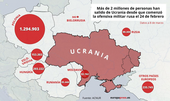 12.25 El número de refugiados ucranianos por la invasión rusa llega ya a los 2,15 millones