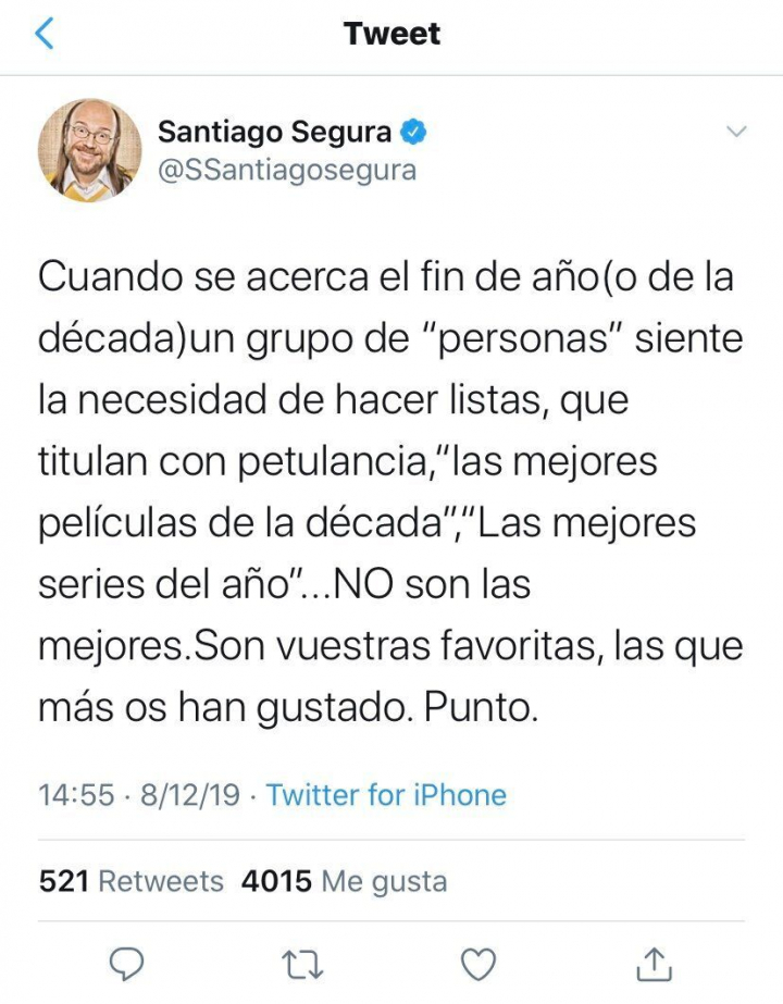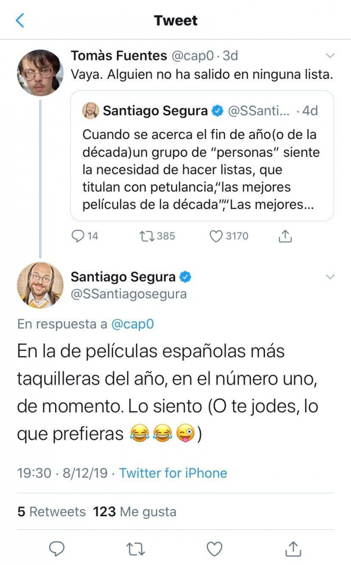 Precisamente el humorista se ha quejado alguna que otra vez de que el tipo de cine que él hace no huela ni de lejos un Goya o no aparezca en listas que recopilan los mejores trabajos del año, a pesar de su importancia recaudatoria incuestionable.