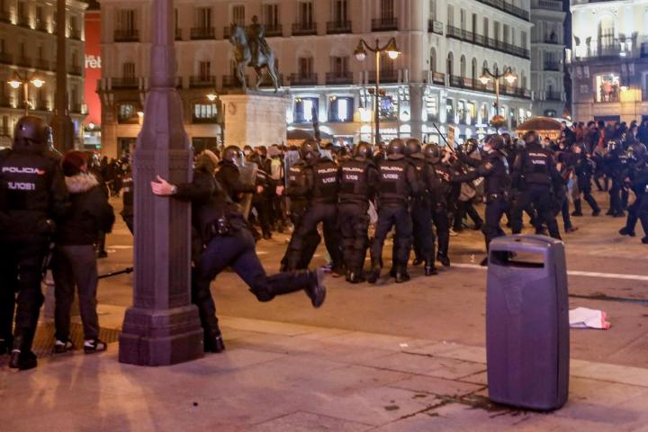 Los graves altercados de anoche en los alrededores de Sol se iniciaron en una manifestación en apoyo al rapero Pablo Hasel tras ser encarcelado dejando casi una veintena de detenidos y 55 heridos, entre ellos agentes de la Policía Nacional y Municipal de Madrid.