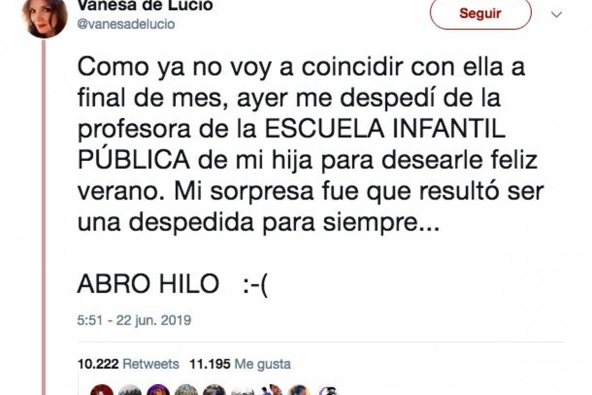 Vanesa de Lucio, periodista de Deportes Cuatro, ha narrado en Twitter la historia de una profesora de la escuela de infantil pública, que se ha visto obligada a cambiar su puesto de trabajo por el de un supermercado.