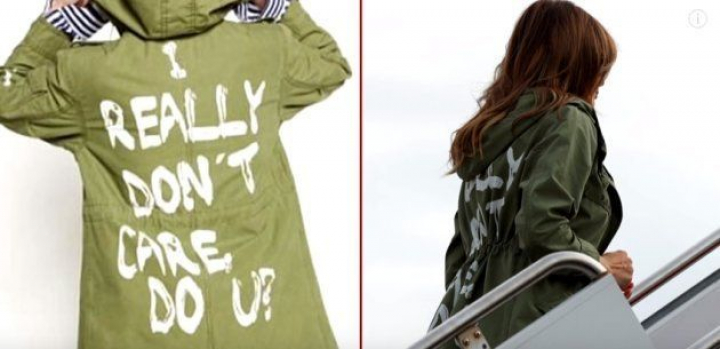 La Primera Dama de EEUU subió a su avión con destino a Texas con una gabardina que llevaba escrito en la espalda: "En realidad no me importa, ¿y a ti?".