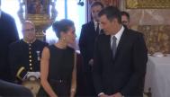 Al momento, el presidente Sánchez le ha dado algunas indicaciones sobre la espectacular sala en la que se encontraban mientras Macron le sujetaba con cariño por el hombro.