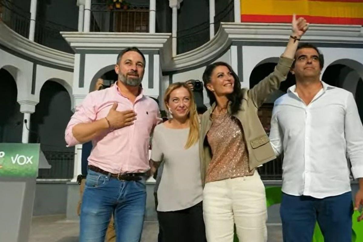Se produjo el pasado 12 de junio en Marbella (Málaga), donde la italiana se desplazó para mostrar su apoyo a Macarena Olona, entonces candidata de Vox a las elecciones andaluzas. Las palabras que a unos –incluso en la derecha– dieron “miedo, simple y llanamente miedo”, a los de Vox les parecieron el culmen de su ideario. “O se dice ‘sí’ o se dice ’no”, lanzó Meloni. “Sí a la familia natural, no a los lobbies LGBT; sí a la identidad sexual, no a la ideología de género; sí a la cultura de la vida, no al abismo de la muerte; sí a la universalidad de la cruz, no a la violencia islamista; sí a fronteras seguras, no a la inmigración masiva; [...] sí a la soberanía de los pueblos, no a los burócratas de Bruselas; y sí a nuestra civilización, y no a quienes quieren destruirla”, proclamó la italiana.