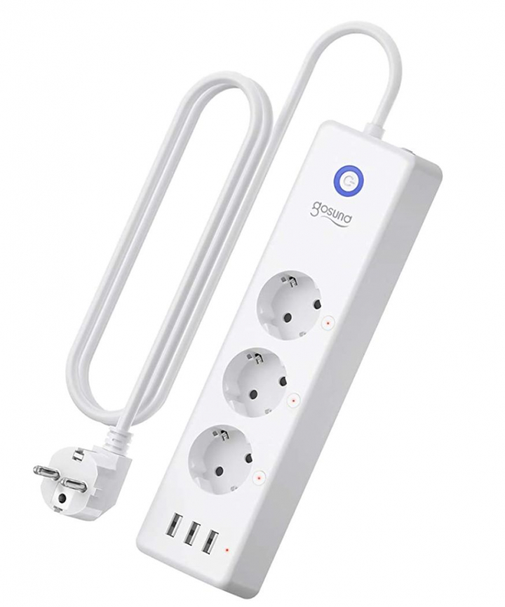 Para los que tengan que conectar varios dispositivos a una misma toma está disponible esta regleta inteligente de Gosund con tres tomas de electricidad que se controlan individualmente mediante la app. También es compatible con Google Home y Alexa y realiza un monitoreo del consumo en la aplicación. Puedes comprarlo aquí por 25,99 euros.