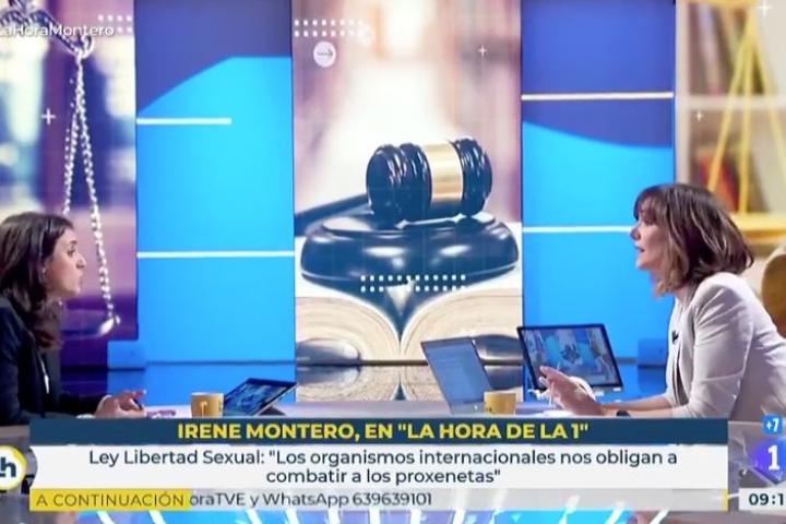 La presentadora de 'La Hora de La 1' y la ministra se enzarzan por la Ley de Libertad Sexual.