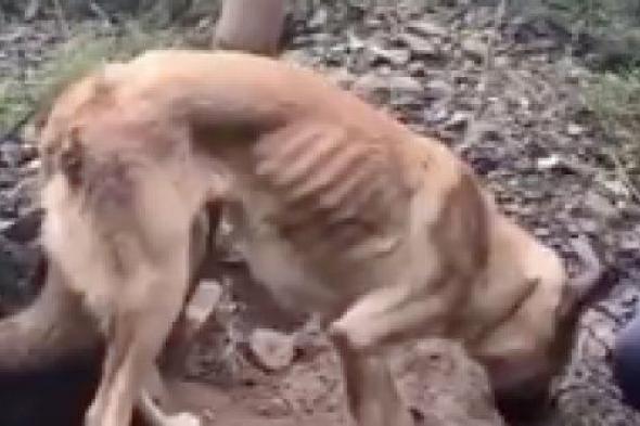 Encuentran a un perro atado en un árbol para que muera de hambre y sed