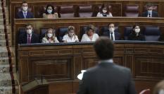 MADRID, 12/07/2021.- La nueva ministra de Política Territorial y portavoz del Gobierno, Isabel Rodríguez, promete su cargo ante el Rey Felipe VI en un acto celebrado este lunes en el Palacio de La Zarzuela, en Madrid. EFE/Ballesteros POOL