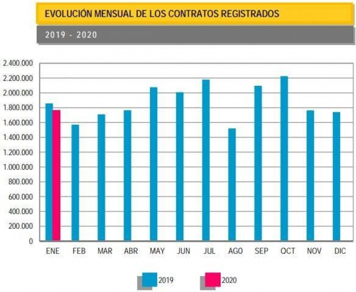 En enero se firmaron 1,76 millones de contratos, un 5,02% menos que en el mismo mes de 2019.
