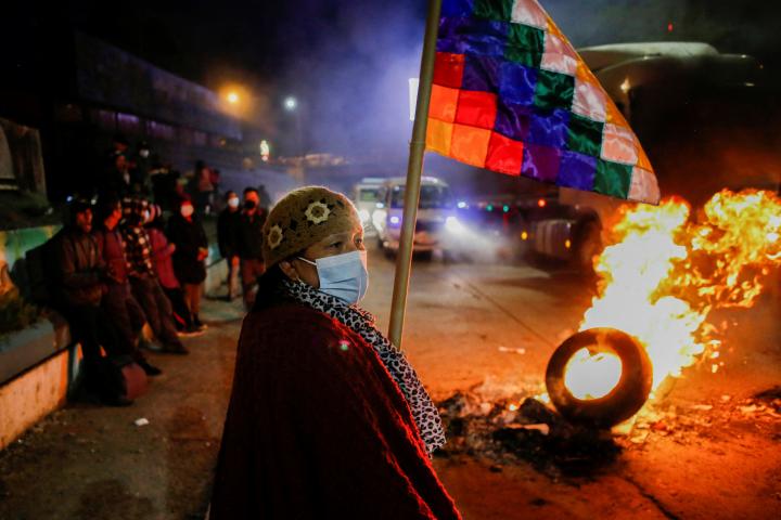 Al derechista se le acusa de "terrorismo" por alentar la crisis que llevó al derrocamiento del expresidente Morales. Sus simpatizantes bloquean el aeropuerto y queman oficinas.