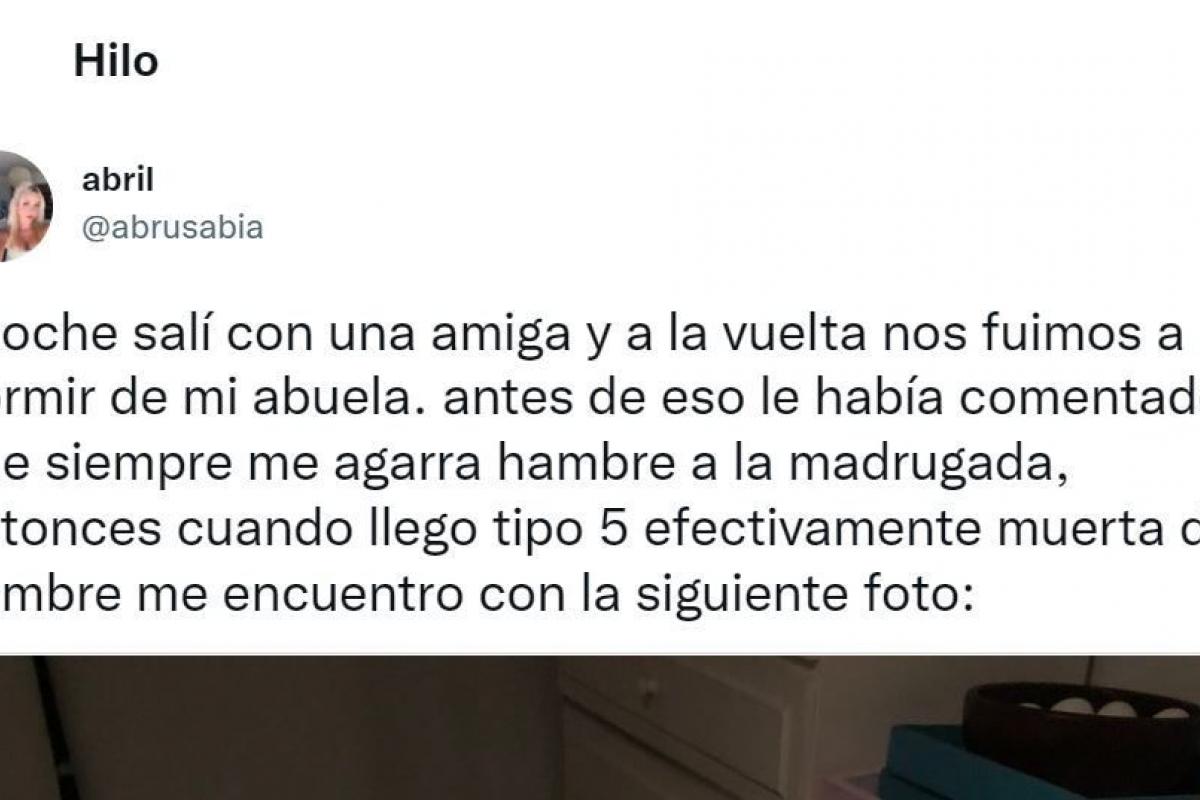 “Anoche salí con una amiga y a la vuelta nos fuimos a dormir (en la casa) de mi abuela. Antes de eso, le había comentado que siempre me agarra (da) hambre a la madrugada”, ha detallado la joven.
