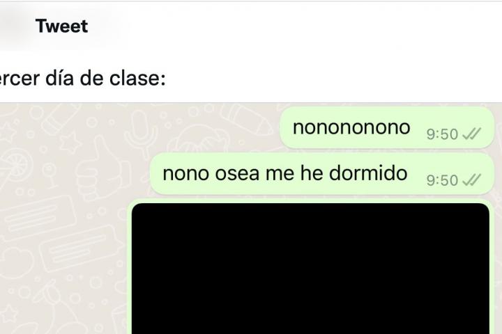 En la conversación de WhatsApp que ha publicado se puede ver cómo le dice a otra persona muy apurado que se ha dormido y que por eso no ha podido ir a clase.