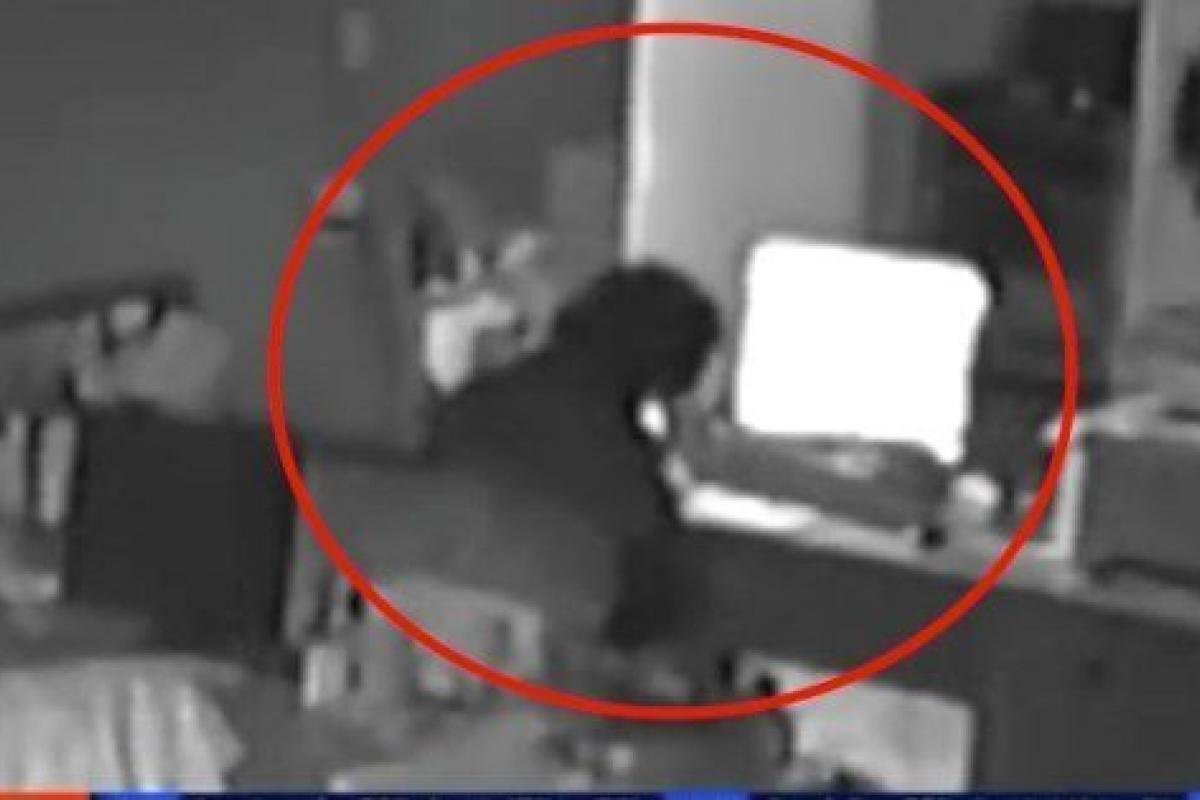 Las imágenes de la cámara de seguridad muestran al ladrón entrando por un agujero del techo al local, donde hay varios ordenadores.