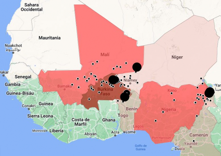 El terrorismo en esta región se está expandiendo a un ritmo sin precedentes. Cada vez abarca más países, y no solo eso, sino que en los territorios donde está presente la actividad es cada vez mayor. Vemos un aumento numérico y de control territorial. Mali y Burkina Faso ya están completamente afectados por este tipo de violencia. En Níger es creciente, y ha llegado ya desgraciadamente los países del Golfo de Guinea. Costa de Marfil, Benín y Togo han sufrido ya atentados de carácter yihadista en los últimos meses y parece que estos grupos están consiguiendo instalarse allí.