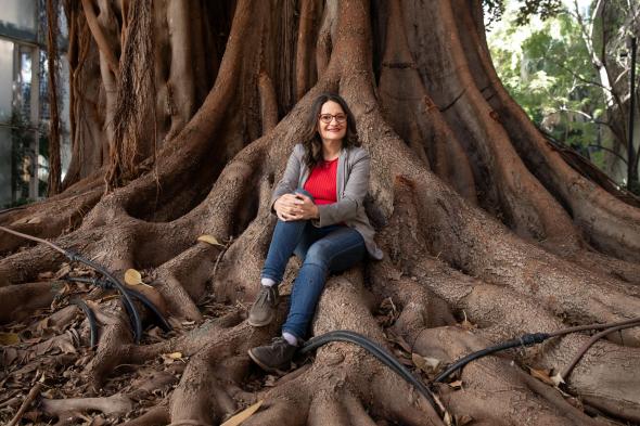 Eso hace entre foto y foto para esta entrevista en el jardín de las Cortes Valencianas, junto al ficus centenario de 22 metros de altura que domina este oasis en mitad de la ciudad. Esa Cámara autonómica, que fue el Palacio de los Borgia, en la que se hizo famosa con sus camisetas clamando contra la corrupción del Partido Popular.