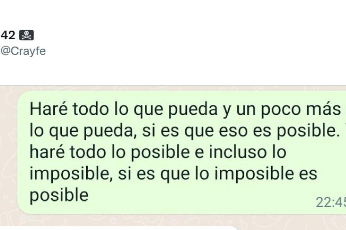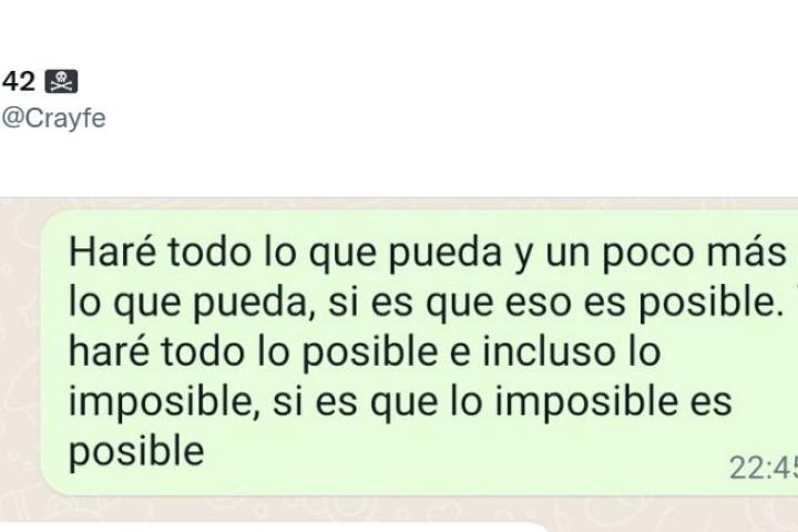 El tuitero @crayfe ha enviado por WhatsApp esta frase y ha recibido una reacción que, tras compartirla en su perfil de la red social del pajarito, se ha vuelto viral.