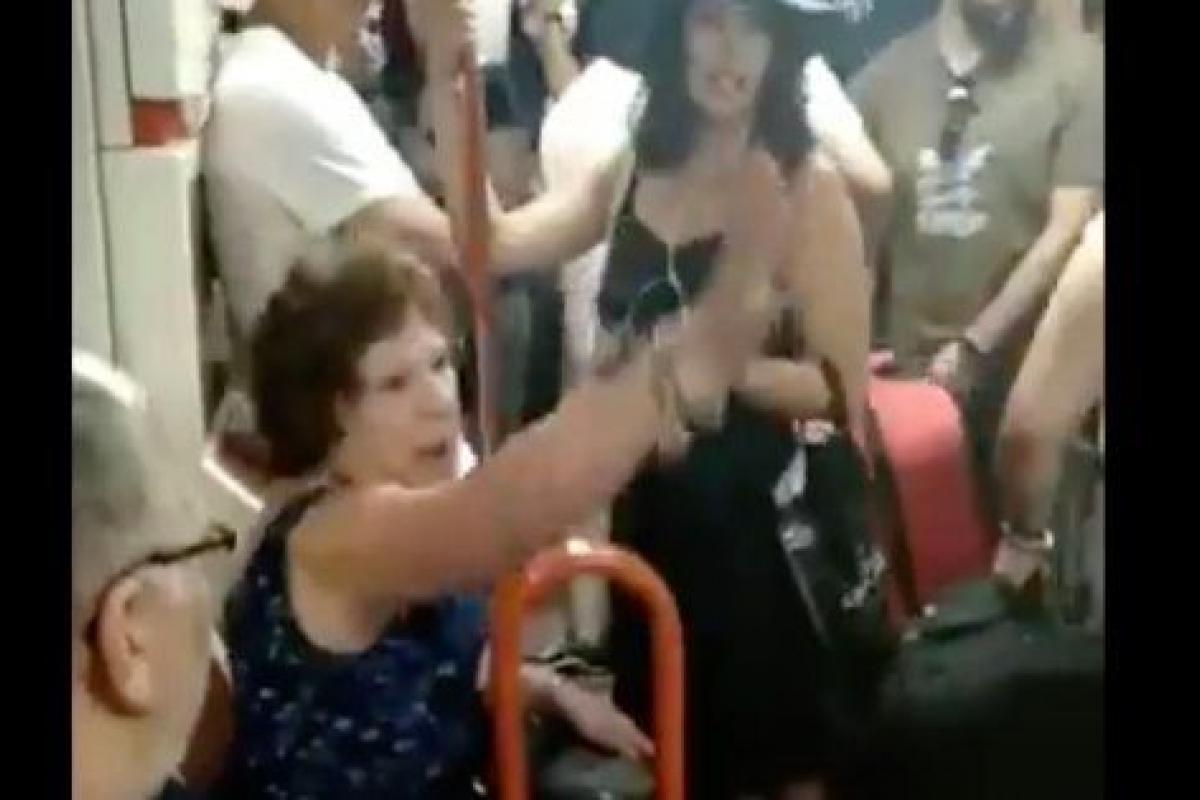En los primeros segundos del vídeo, puede escucharse la siguiente discusión: "¿Sentarse la niña pequeña? Vamos, ¡a la porra! ¡Sinvergüenza!", grita la señora dirigiéndose a una pasajera cercana. "Sinvergüenza usted, maleducada, racista", le responde la pasajera en pie junto a ella, en tono contundente pero más sereno e inteligible.