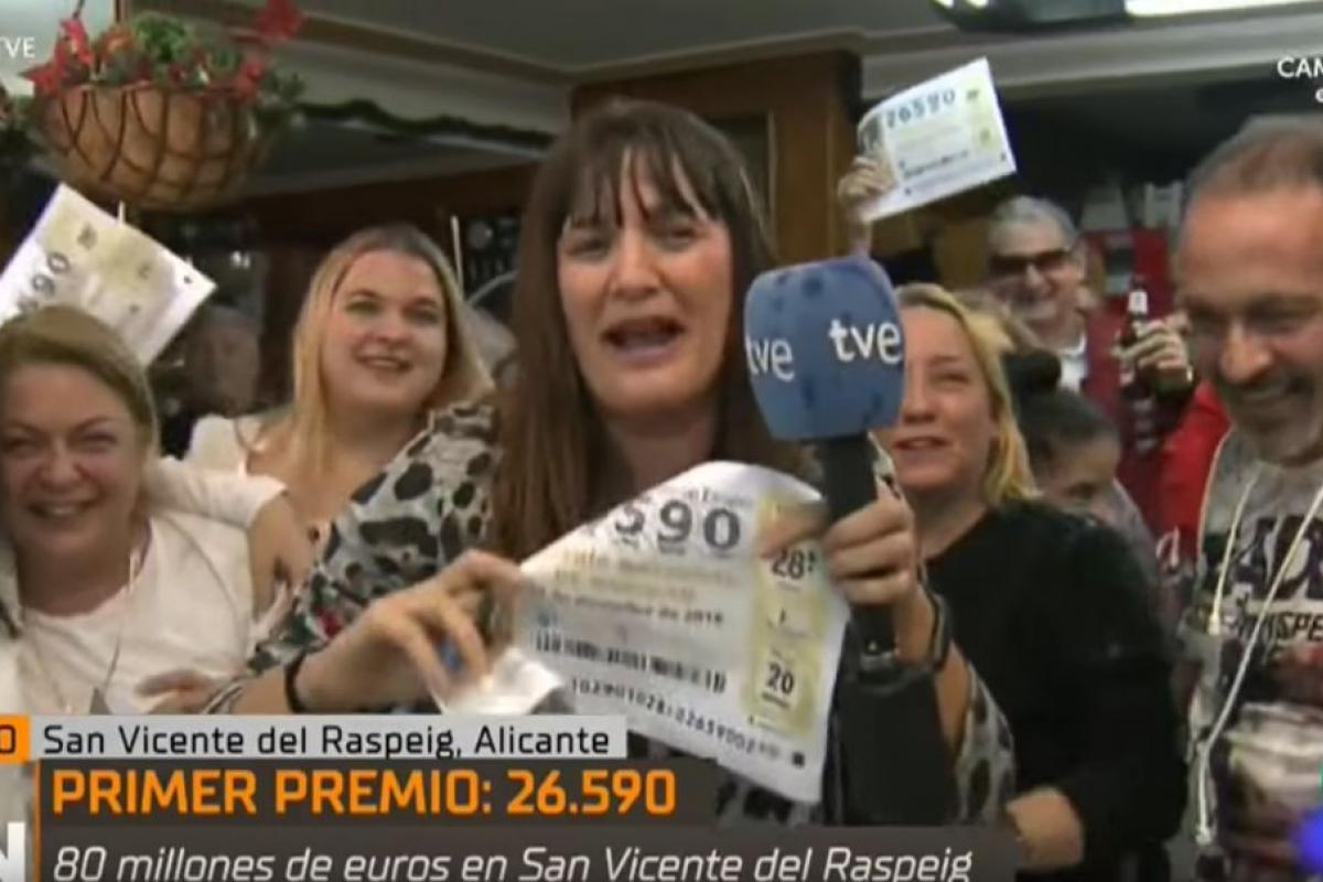 La periodista se desplazó hasta la localidad alicantina de San Vicente del Raspeig para informar de la alegría de los vecinos a los que les había tocado ‘El Gordo’.