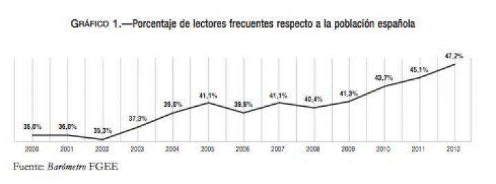En hábitos de lectura, los españoles se comportan de forma similar a los países de su entorno. Según el último informe de La lectura en España, el 47,2% de la población lee libros al menos una vez a la semana, un porcentaje que ha ido en aumento constante y pronunciado desde el año 2000. También ha aumentado, más ligeramente, la media de libros leídos al año, que actualmente se sitúa en ocho.