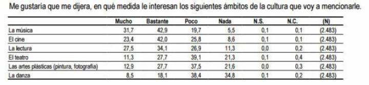 A pesar de ello, leer se relaciona con personas con una inquietud e interés superior a la media nacional. Los españoles creen que la lectura enriquece más que ir al cine, al teatro, a un concierto o a un museo —actividades en la que los lectores participan, además, por encima de la media—. De hecho, eligen la lectura como lo tercero que más les interesa tras la música y el cine, aunque hay más gente a la que le gusta "mucho" leer que aquella que manifiesta lo mismo por ver películas.