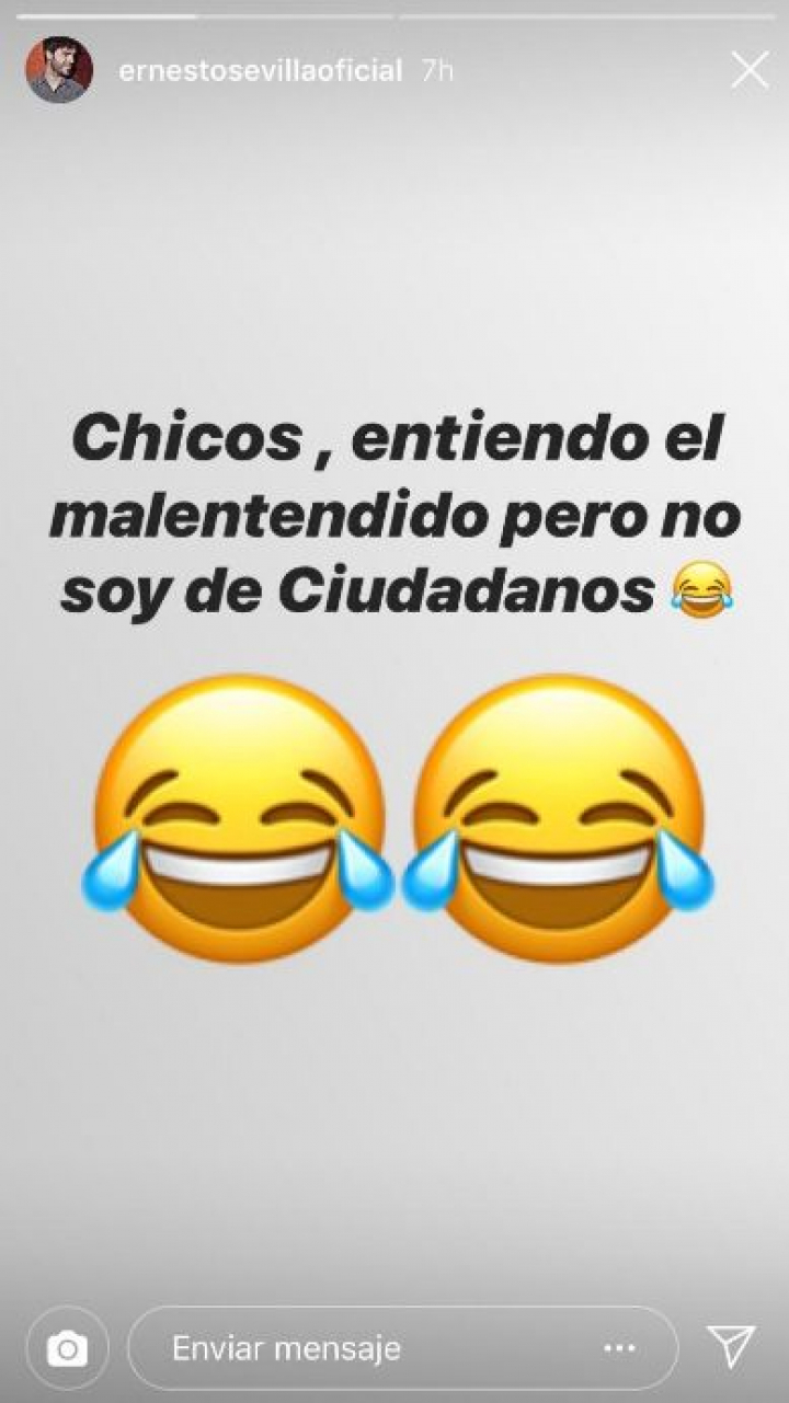 Una información que el propio Sevilla se ha apresurado a matizar en su cuenta de Instagram con dos stories. En uno de ellos ha escrito: “Chicos, entiendo el malentendido pero no soy de Ciudadanos”.