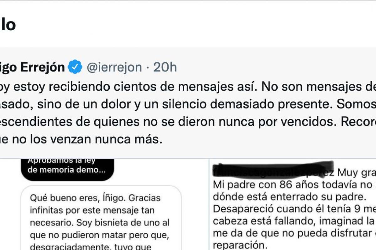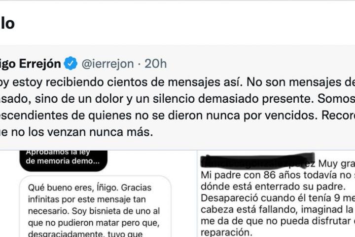 Horas después del discurso de Errejón, el diputado ha compartido los cientos de mensajes que ha recibido de personas a las que va a beneficiar esta ley y que no saben dónde están enterrados sus antepasados.