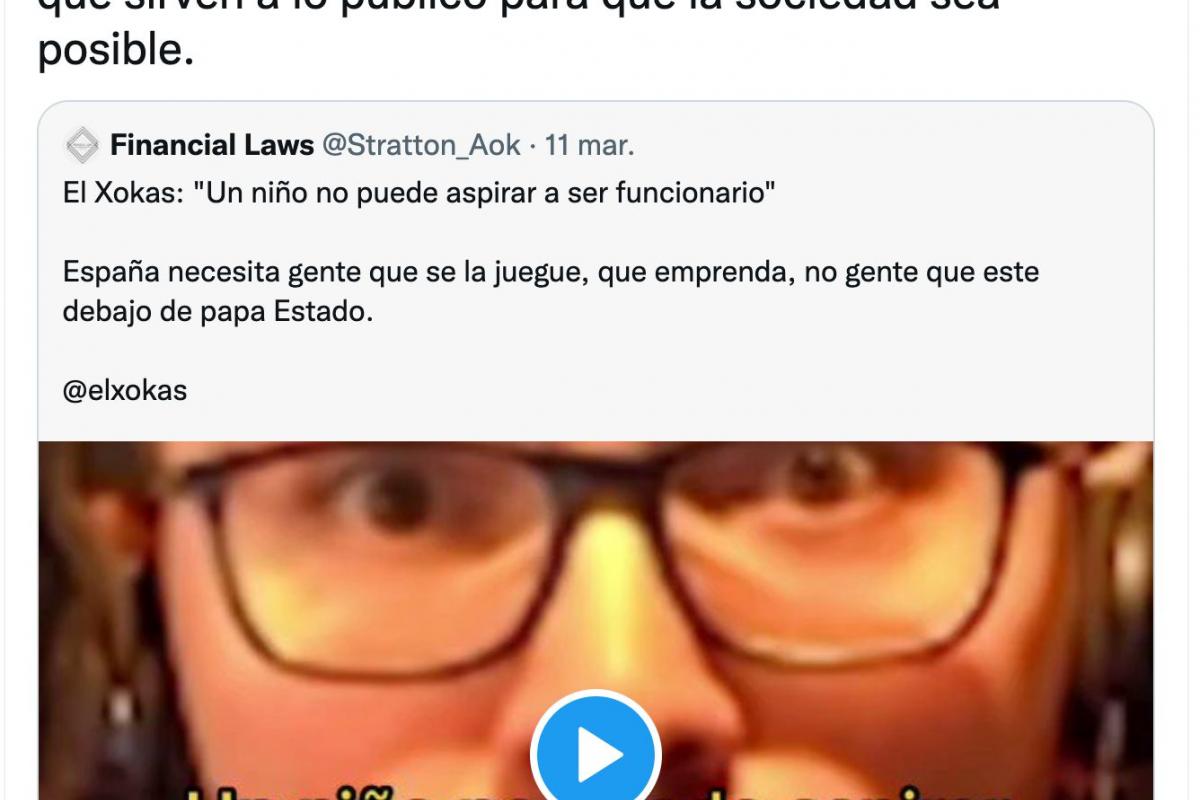 En el vídeo de El Xokas, de 26 segundos, habla de la forma en la que se educa a los niños para que quieran ser funcionarios. Un fragmento que forma parte de una charla con su audiencia bastante más extensa.