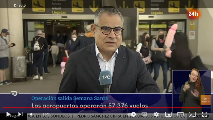 Mientras el periodista Lluís Mestres informaba sobre las llegadas a la isla se podía ver cómo entraba y salía gente del aeropuerto. En ese instante, mientras hablaba de los más de 50.000 vuelos que van a operar estos días en España se asomaba por el lado izquierdo de la pantalla una persona con lo que parece un pene gigante de goma.