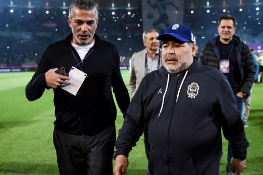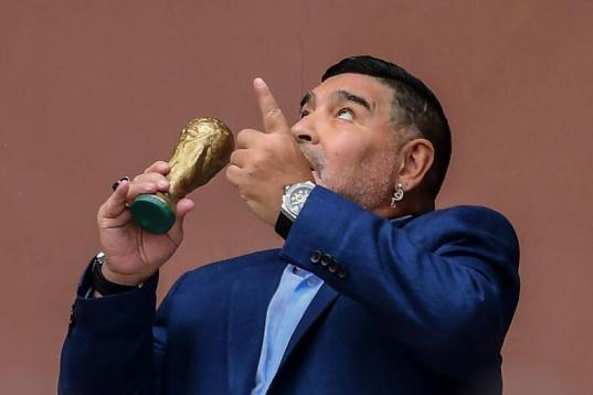 El último Mundial de fútbol dejó una de las imágenes más triste de El Pelusa, cuando tuvo que abandonar la grada de un estadio ayudado por otros tres hombres porque no se sostenía en pie.