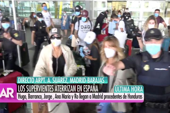 Los robinsones ya están en España. Los concursantes de Supervivientes (Telecinco) han aterrizado en el Aeropuerto Adolfo Suárez Madrid-Barajas este martes a mediodía. El Programa de Ana Rosa ha emitido en directo las imágenes de su llegada a la capital, que han llamado especialmente la atención por la aglomeración de periodistas y curiosos alrededor de los concursantes sin mantener la distancia de seguridad.
