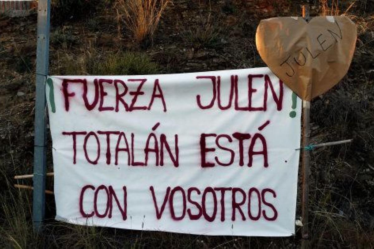 "Fuerza, Julen. Totatán está con vosotros". Una de las pancartas más fotografiadas de estos días, junto al dispositivo de la Guardia Civil.