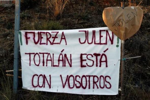 "Fuerza, Julen. Totatán está con vosotros". Una de las pancartas más fotografiadas de estos días, junto al dispositivo de la Guardia Civil.