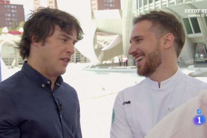 Los concursantes se encontraban en la prueba de calle por equipos, celebrada en Valencia, cuando Jordi se acercó a las cocinas con el chef Pablo Ministro a ver cómo iban.