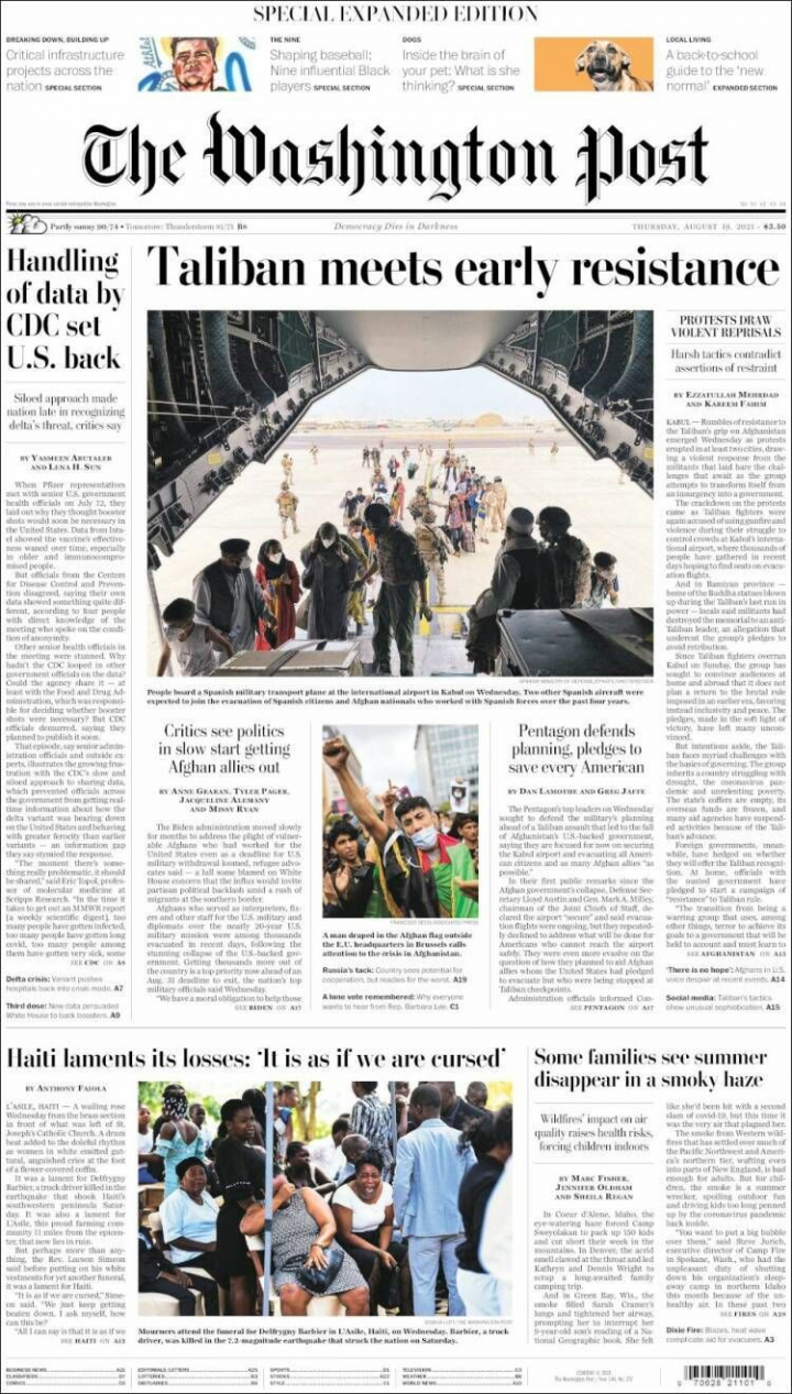 La imagen de los soldados del Ejército español recogiendo a todas estas personas en el aeropuerto de Kabul ha sido foto de portada del prestigioso diario estadounidense The Washington Post.