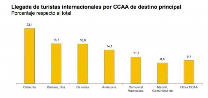 En este gráfico del INE se puede ver las principales comunidades autónomas que visitaron los turistas: