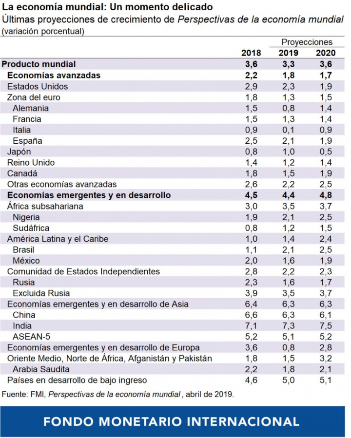 La economía mundial crecerá un 3,3% durante este año —dos décimas menos de lo previsto anteriormente— y un 3,6% en 2020, según la nueva edición del informe Perspectivas de la economía mundial publicado este martes por el organismo que dirige Christine Lagarde.
