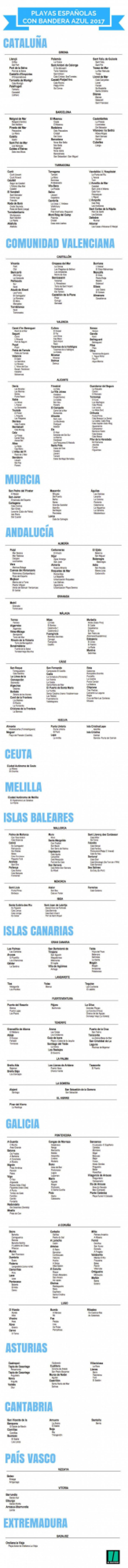 España ha obtenido un total de 684 banderas azules (579 playas, 100 puertos deportivos y cinco embarcaciones turísticas) que ondearán a partir de junio de 2017. Esto supone un leve descenso, con dos menos, respecto a las 686 registradas año 2016, de modo que en una de cada cinco playas del litoral nacional lucirá esta bandera. En lo que se refiere a los arenales, ondearán 586 banderas este año, lo que supone siete menos que en 2016.